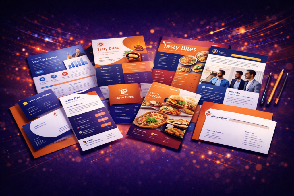 From business cards to brochures, menus to letterheads—we design cohesive branding materials that make your business look professional, credible, and unforgettable.